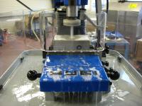 Dispositif de meulage avec arrosage: l’agent réfrigérant (paraffine ou substance similaire) est distribué directement par le biais de la tour à pointes.